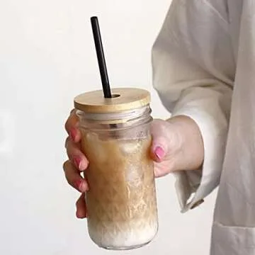 8 Pack Mason Bamboo Jar Lids with Straw Hole Reusable Bamboo Canning Jar Lids for Regular Mouth Mason Jar (70mm with Hole)