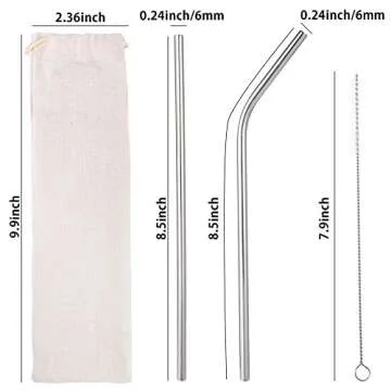 8 Pack Silver Reusable Metal Straws Stainless Steel Straws with Silicone Tip & Travel Case & Cleaning Brush for 20-30oz Yeti Tumblers Dishwasher Safe Eco-friendly Portable