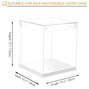 Show more Introducing our exquisite set of 8 clear cake boxes, designed to elevate your cake presentation to new heights! With dimensions of approximately 10 x 10 x 12 inches, these boxes are perfectly sized for cakes up to 8 inches in diameter. Not only functional, they also ensure that your delicious creations are showcased in a stunning manner.