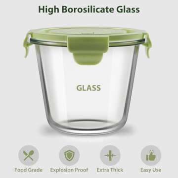 8 PCS Glass Meal Prep Containers with Lids, Airtight 3 Cup Glass Storage Containers Set, Heat-Resistant BPA-Free Containers for Soup Leftover, Microwave, Dishwasher, and Freezer Safe (4 Packs)