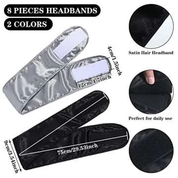 8 Pieces Silk Spa Headband Satin Hair Wrap - Adjustable for Skincare and Sleep