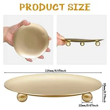 Show more Transform your space with our exquisite set of gold iron plate candle holders, crafted to add a touch of elegance and functionality to any environment. This set includes 8 well-packaged pieces, designed to meet all your home and party candle display needs. Each holder measures approximately 4.5 inches in diameter and stands at a modest height of 0.7 inches, making them the perfect fit for a variety of candles without overwhelming your décor.