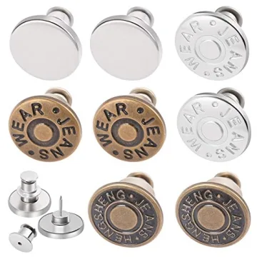 Show moreIf you've ever faced the annoyance of pants that just won't fit right, the Ceryvop Adjustable Jean Button Pins are your ultimate solution. These pins, meticulously designed to tackle the common issue of loose clothing, come in an 8 PCS removable button set that transforms your wardrobe with effortless elegance. Made from upgraded high-quality metal, these innovative pins feature a double-sided plating process that significantly enhances durability and resistance against wear and tear. Unlike traditional buttons that can bend or break easily, these sturdy pin buttons remain intact, ensuring reliability wear after wear.