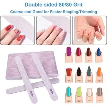 80/80 Grit Nail Files (50 Pcs), Emery Boards for Acrylic Nails and Gel Nails, Coarse Nail File Double Sided 80 Grits Emory Professional Nail Filers Pack Reusable Washable Manicure Gray