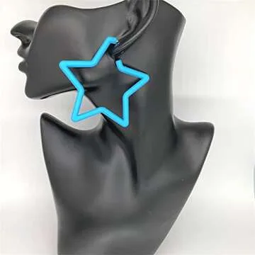 Show moreIntroducing our **80s & 90s Colorful Star Hoop Earrings**, a stunning statement piece designed to add a vibrant touch to any outfit. Measuring approximately **6 cm (2.4 inches)**, these earrings are perfectly sized for comfort while making a bold style statement. Crafted from durable alloy and finished with a stoving varnish, these hoop earrings are lightweight and resistant to fading or breaking, ensuring a long-lasting addition to your jewelry collection. With a retro vibe and a variety of vivid colors, they're easy to pair with both casual and formal ensembles, making them a versatile accessory for any occasion.
