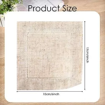 Show moreIntroducing the 80 Pieces Linen Cocktail Napkins Bulk - the ultimate solution for your entertaining needs! These elegant 6 x 6 inch napkins, available in a sophisticated natural linen color, combine >style and functionality in one perfect package. Each set contains 80 exquisite napkins, skillfully made from a blend of durable linen and cotton materials. Their classic hemstitched design adds a touch of refinement to any occasion, be it a casual family dinner or a lavish wedding reception. Perfectly suited for a variety of uses, these soft, reusable napkins contribute to an eco-friendly lifestyle while enhancing your dining experience.