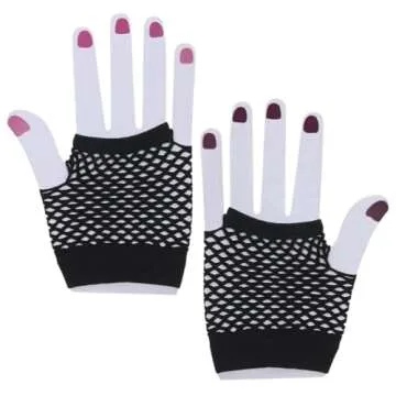 Show more Unleash Your Inner Fashionista with our 80's Punk Black Fingerless Fishnet Short Gloves, the quintessential accessory for those looking to make a statement. Designed to captivate attention and spark conversations, these gloves blend the iconic punk aesthetic with modern style, making them a must-have for parties, raves, and all special events. Constructed with a thoughtful combination of nylon and spandex, they offer a stretchable fit that allows you to dance the night away comfortably while keeping you in vogue.