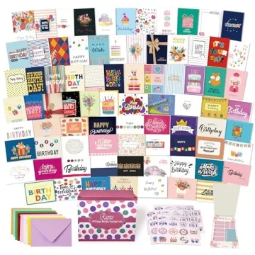 Introducing the ultimate solution for all your birthday card needs: a collection of 80 large, high-quality unique birthday cards from a trusted brand renowned for its creativity and durability. Each card measures 5x7 inches, crafted from thick card stock with a robust weight of 350 grams, ensuring that these cards are not only visually appealing but also impressively sturdy. Wave goodbye to generic birthday wishes, as this amazing pack guarantees no duplicates. Each card carries a carefully crafted message...