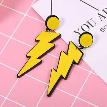 Show more Step into the vibrant world of the 80s with our stunning 80s Neon Lightning Bolt Drop Dangle Earrings. Designed to make a statement, these earrings are crafted from high-quality acrylic and measure a fashionable 8.9cm in length, perfect for adding a pop of color and energy to any outfit. These earrings are not just accessories; they're a celebration of boldness and individuality, making them an ideal addition to your Halloween costume, themed party, or even a casual day out with friends.