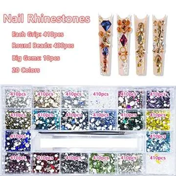 8200 Pcs AB Red Blue Green Champagne Gold Black Yellow Nail Rhinestones Mixed Colored Multi Shaped Sized Nail Beads Glass Gems Stones Rhinestones for Nail DIY Crafts Jewelry