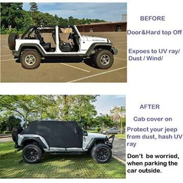 When compared to other vehicle covers on the market, the 82215370 Cab Cover stands out due to its specific design for Jeep Wrangler models, ensuring a better fit and enhanced protection. Many competitors may use inferior materials that lack the durability and water resistance of our heavy-duty 600D oxford fabric. Additionally, our unique features such as adjustable straps, customer satisfaction guarantee, and innovative storage solutions make this cover a comprehensive and reliable option for Jeep owners.