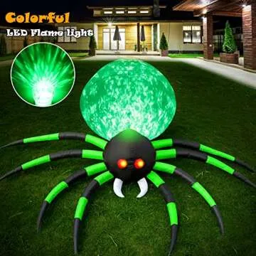 8FT Halloween Inflatables Spider Outdoor Decorations for Yard, Giant Blow up Green Spider with Rotating Fire Flame Light, Large Spooky Spider Props for Halloween Party Garden Lawn House Holiday Decor