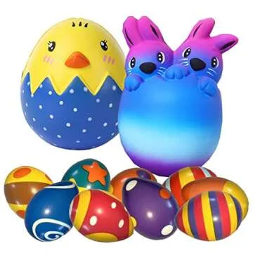 Show moreWelcome to a world of fun and relaxation with our 8PACK Easter Squishy Toys. This delightful collection features a charming assortment of squishies, including a lovable Easter bunny, a cheerful Easter chick, and six vibrant Easter eggs (note that the designs of the eggs are random). Crafted from high-quality PU foam, these squishies are not only environmentally friendly but also non-toxic and BPA-free, ensuring they are safe for everyone—from kids to adults. Perfectly packed in an eye-catching gift box, this set brings joy and excitement to any Easter celebration.