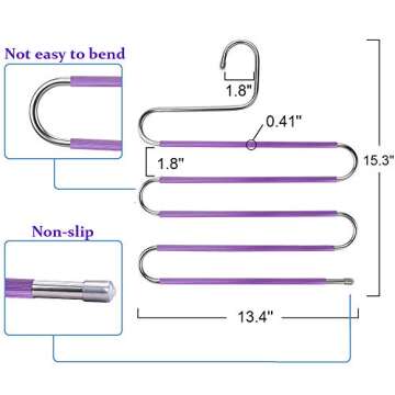 8pcs Pants Hangers S-Type Jeans Trousers Hangers Stainless Steel Clothes Hangers Closet Space Saving for Pants Jeans Scarf Organizer (Purple with 10 Clips)