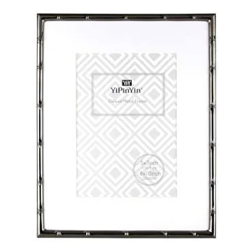 Show moreIntroducing the exquisite 8x10'' Bamboo Detail Designs Black Metal Picture Frame Set, featuring an elegant charcoal black metal finish that will enhance the aesthetics of any setting. This beautifully crafted picture frame set comes with two frames, each measuring 10x8 inches, accommodating 5x7 inch photos when used with the included mat. The intricate bamboo design adds a touch of sophistication, making it a perfect piece for home or office appreciation.