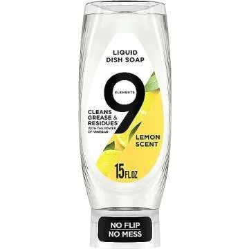 9 Elements EZ Squeeze Dish Soap, Lemon Scent, 15 oz Bottles (3 Pack)