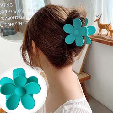 Show more Introducing the 9 PCS Large Flower Hair Clips set, a stunning collection of hair accessories that blends functionality with vibrant aesthetics. Crafted from high-quality plastic, these hair claw clips are not only robust but also designed to maintain a bright and cheerful look. Each clip comes with an innovative internal serrated design, ensuring a firm grip that keeps your hair securely in place throughout the day. Whether you are dressing up for a special event or styling for everyday wear, these clips are perfect for creating exquisite hairstyles that embrace your unique style.
