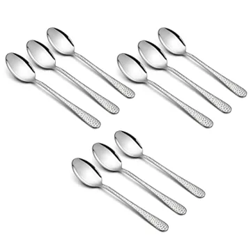 Show moreIntroducing the 9-Piece Stainless Steel Kids Spoons by HaWare, your ultimate solution for nurturing self-feeding skills in toddlers! Skillfully crafted with high-quality food-grade stainless steel, these spoons are designed to be non-toxic, rust-free, and completely safe for children. Ideal for children transitioning to adult-sized tableware, they feature a perfectly customized mini size that fits seamlessly in little hands. Their beautiful hammered pattern makes mealtime visually appealing, sparking joy and enthusiasm with every bite.