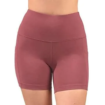 90 Degree By Reflex - High Waist Power Flex Biker Shorts with Side Pockets - 5", 7", 9" - Rouge Blush 5" - Medium