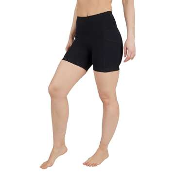 90 Degree By Reflex - High Waist Power Flex Biker Shorts with Side Pockets - 5", 7", 9" - Black 5" - Large