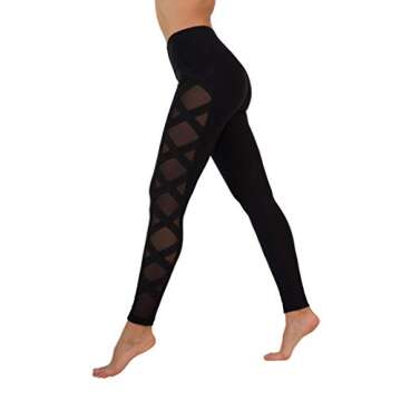 90 Degree By Reflex Women’s High Fashion Criss Cross Workout Leggings with Sheer Mesh Panels