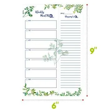 Show more Introducing the ultimate solution for busy kitchens—a beautifully designed 90 Pages Weekly Meal Planner List Note Pad! This innovative organizer integrates a weekly planner and grocery shopping list, specifically crafted to simplify your meal prep and shopping experience. At dimensions of 6" x 9", it fits perfectly on your refrigerator, enabling you to plan your meals with ease.