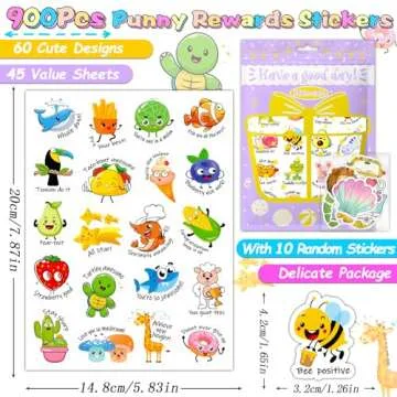 Show more Introducing a delightful collection of Value Reward Stickers that every educator and parent will adore! Packaged neatly with a whopping 900 pieces, this set includes 60 unique sticker designs that enhance various labeling needs. Each sticker has a perfect size of approximately 1.2 inches, making them ideal for a multitude of rewards and recognitions. The stickers come in a charming bag with an additional 10 random cute stickers to spark joy.