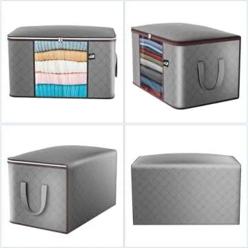 90L Large Storage Bag, 4 Pack Foldable Blanket Storage Bins, Clothing Storage Bins, Foldable Clothes Organizer and Storage Containers with Lids and Handle for Organizing Bedroom, Closet, Clothing
