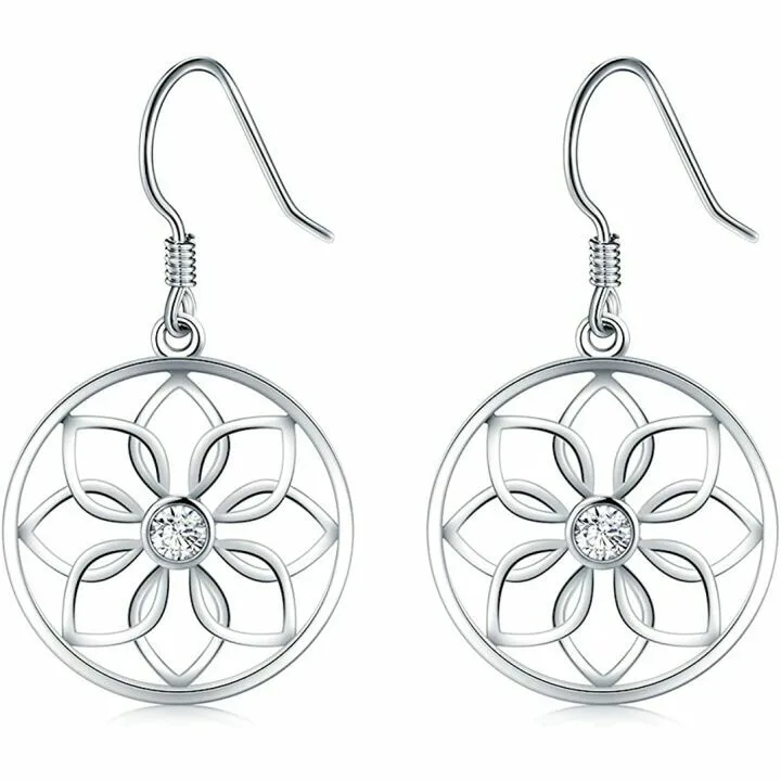 BoRuo Lotus Flower Yoga Earrings - 925 Sterling Silver Beauty