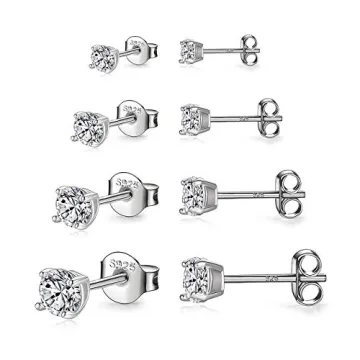 Show moreDiscover the perfect blend of elegance and practicality with our exquisite 925 Sterling Silver Stud Earrings Set. Meticulously crafted from high-quality sterling silver and elegantly plated with white gold, these stunning earrings feature a dazzling array of cubic zirconia stones that sparkle like genuine diamonds. This set includes four different sizes (3mm, 4mm, 5mm, and 6mm), making it an ideal choice for any occasion or mood, whether you’re looking for subtle sophistication or a touch of glam.