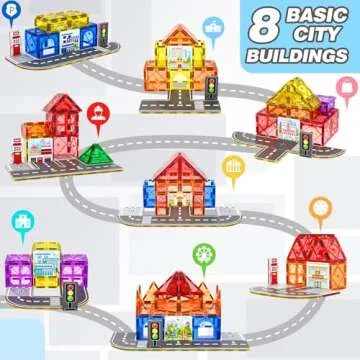 92PCS Magnetic Tiles Build Your Own Live City Toddlers Kids Toys City Road Construction Sensory Toys Preschool Learning Play with Cars Pretend Play Toy Gift for 3 4 5 6 7 Year Old Boys Girls