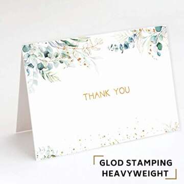 Elegant Gold Foil Greenery Thank You Cards Set - 96 Pack
