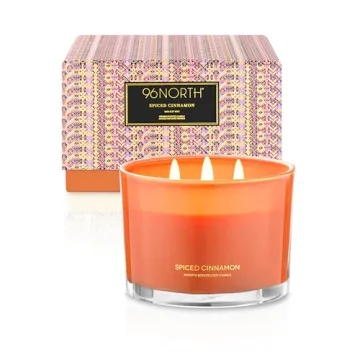 96NORTH Luxury Spiced Cinnamon Candle - 50 Hour Burn, 3 Wick Natural Soy Wax