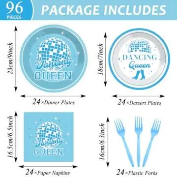 96Pcs Dancing Queen Party Supplies Dancing Queen Paper Plates Napkins Disposable Blue Disco Party Tableware Set 70s Disco 17th Birthday Dinnerware for Party Bachelorette Decoration Serve 24