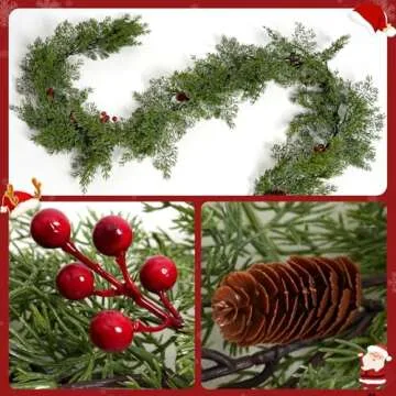 9FT Artificial Long Cedar Garlands - Real Touch Winter Pine Garland, Green Artificial Greenery Garland for Table, Mantle, Wall, Indoor, Outdoor Christmas Decoration