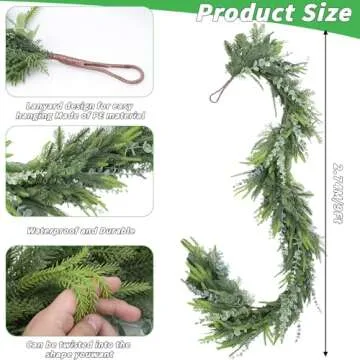 Show more Transform your home into a festive wonderland with our exquisite 9FT Christmas Garland, an enchanting blend of eucalyptus, cedar, and cypress. Measuring at a grand 9 feet (274 cm), this garland is designed for versatility, perfect for draping along your mantle, adorning your staircase, or gracing your walls. Handcrafted with stunning detail, each branch features lifelike pine needles that create a rich, dense look, making it a charming addition to any holiday decor. Its realistic texture and vibrant green colors bring the essence of nature into your celebrations, ensuring every corner of your home is filled with holiday cheer.
