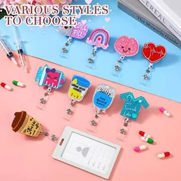9pcs Nurse Badge Reel Nurse Retractable Holder Bling Glitter Scrub Life Reel Scrub Life ID Name Badge Holder Nursing Name with Alligator Clip for Office Nurses Doctors(Lovely)