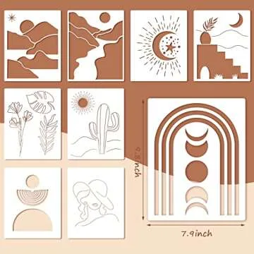 9PCS Sun Moon Painting Stencils, 8x10 Inch Abstract Boho Templates Mountain Landscape Drawing Stencils Minimalist Sunrise Themes Women Stencils for Painting on Canvas Home Decoration