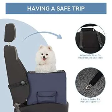 A 4 Pet Dog Car Seat for Small Dogs, 15 Inch Puppy Dog Booster Car Seat, Elevated Dog Car Bed with Seat Belt and Pocket for Front and Back Car Seat - Dark Blue, Small