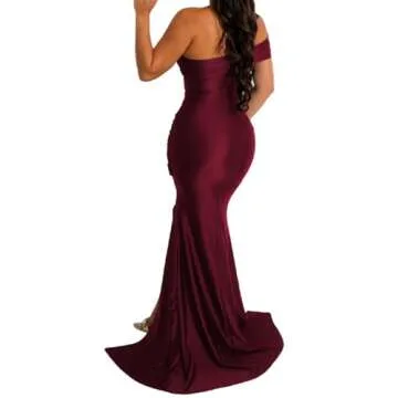 A ADILACA Formal Maxi Dresses for Women Evening Party, Formal Short Sleeve Maxi Dress for Women Wedding Guest, Off The Shoulder Bodycon Maxi Dress for Women (Dark Red, XL)