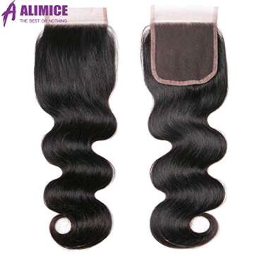 A ALIMICE Brazilian Body Wave Bundles With 4x4 Lace Closure with Body Wave 3 bundles Virgin Human Hair Bundles Natural Color (10 12 14 + 10 closure)