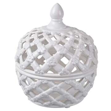 A&B Home Ceramic Lidded Jar White Porcelain Jar Home Décor Tabletop Decorative 8" x 8" x 10"