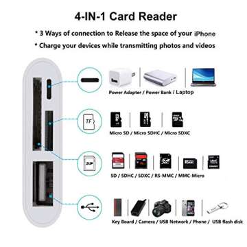 Show moreIntroducing the **A-BST SD Card Reader Micro SD/SD Card Adapter 4 in 1 Trail Game Camera Card Viewer Reader** – the ultimate solution for seamlessly transferring your photos and videos directly to your iPhone or iPad. This innovative device is more than just a card reader; it features a compact and portable design that's perfect for on-the-go photography enthusiasts and adventure seekers alike. Equipped with a Lightning charging port, you'll never have to worry about power shortages when your creativity strikes. The convenient dual card slots support SD, SDXC, Micro SD, and T-Flash cards, while the USB port ensures compatibility with a variety of devices. With just a plug-and-play setup, this adapter is perfect for all your digital photography needs, whether you're a professional photographer or an amateur capturing memories.