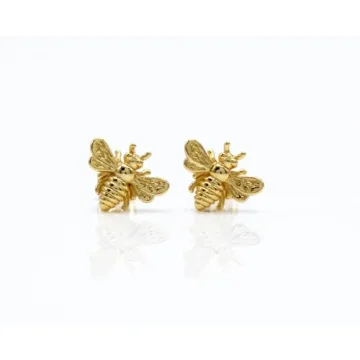 A Charmed Impression Little Gold Bee Earrings – Handcrafted Gold Honeybee Studs
