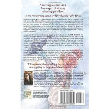 Show moreStep into the enchanting world of "A Christmas Blessing for Gracie," a beautifully crafted romance novel that captures the essence of love, hope, and holiday spirit. Set in the picturesque Spring Valley, this captivating tale follows Gracie, a dedicated community member with a kind heart, as she navigates the joys and challenges of the Christmas season. Written by an acclaimed author known for her ability to weave emotional narratives, this book promises to take readers on an unforgettable journey filled with laughter, tears, and passionate romance. The story's warmth is complemented by the vivid imagery of snowy landscapes and festive gatherings, making it the perfect read for the holiday season. With relatable characters and touching moments, this novel is more than just a romance; it's a celebration of life’s blessings and the magic of Christmas.