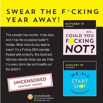 When stacked against other calendars on the market, A F*cking 2024 Boxed Calendar holds its ground with a unique blend of humor and practicality. While other calendars may emphasize inspiration or motivation, this one embraces a refreshing, no-holds-barred approach that resonates with its audience. Unlike serious and generic products, this calendar encourages a rebellious spirit and honesty in recounting daily routines, helping to brighten even the dullest of days. Its quality finish and thoughtful design also make it stand out in a sea of mediocre alternatives.