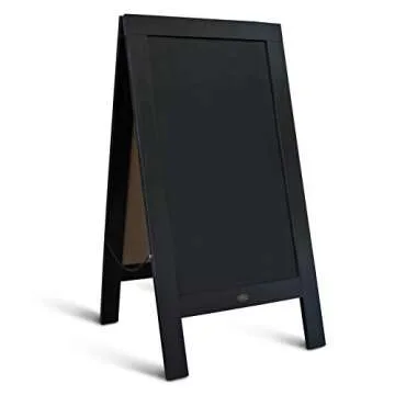 Show morePresenting the A Frame Chalkboard by HBCY Creations, a versatile addition to your business or personal events! This stunning 40" x 20" double-sided chalkboard features a solid pine wood frame that not only boasts exceptional durability but also adds a rustic charm to your décor. Whether you're setting up a café menu, wedding details, or a special announcement, this chalkboard is designed to meet all your display needs. With a no-ghost writing surface, forget about leftover chalk marks—your messages will look pristine, enhancing the vibrancy of your chalkboard markers. The sleek, elegant design is complemented by a rich black finish that makes colors pop, offering you a canvas for your creativity to shine.
