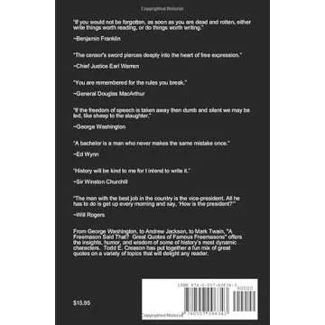 The book features a curated selection of quotes from famous Freemasons that reflect their insights on brotherhood, ethics, and personal growth.