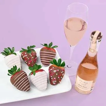 A Gift Inside 6 Chocolatey Covered Love Berries Strawberries with Sparkling Alcohol-Free Rose Brut