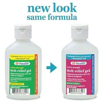 A+Health Extra Strength Itch Relief Gel, Diphenhydramine HCl 2% Topical Analgesic, Relives Itching and Pain for Bug Bites, Rashes, Poison Ivy, Oak and Sumac, Made in USA, 4 Ounces